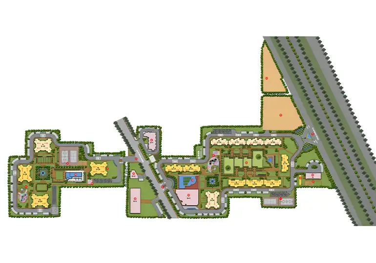 Residents enjoy world-class facilities including a grand clubhouse, swimming pools, gymnasium, sports courts, meditation zones, and beautifully landscaped gardens.