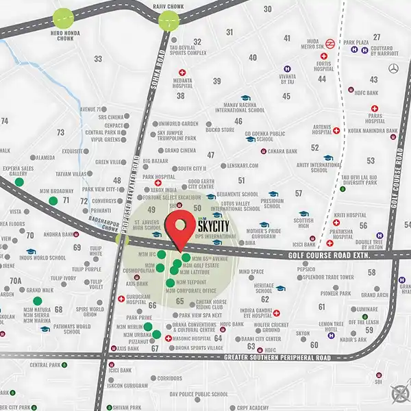M3M Skycity is an iconic mixed-use development that redefines the concept of urban living in Gurugram. Located on the prestigious Golf Course Extension Road in Sector 65, it offers premium 2 & 3 BHK residences perched above a thriving retail and entertainment hub. Each home is thoughtfully designed with spacious layouts, modern interiors, and panoramic views that bring elegance and comfort together.