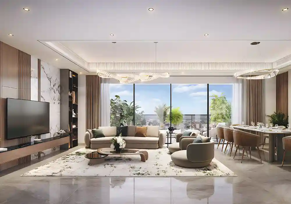 Thoughtfully designed 3 & 4 BHK apartments with expansive layouts, large balconies, and panoramic city views.