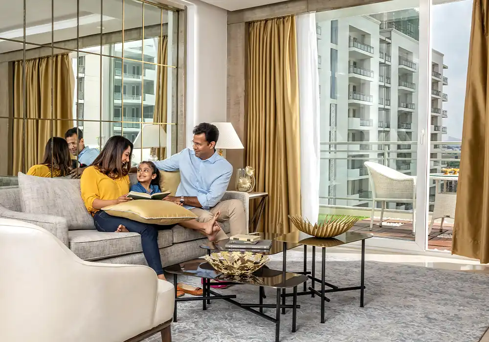 Residents enjoy world-class facilities including a grand clubhouse, swimming pools, gymnasium, sports courts, meditation zones, and beautifully landscaped gardens.
