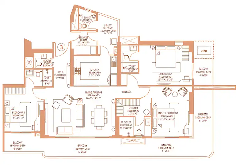 Large 3 BHK + Servant