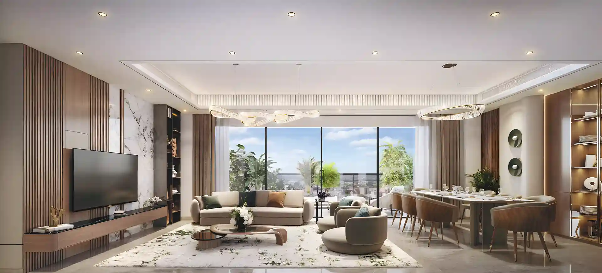 Thoughtfully designed 3 & 4 BHK apartments with expansive layouts, large balconies, and panoramic city views.