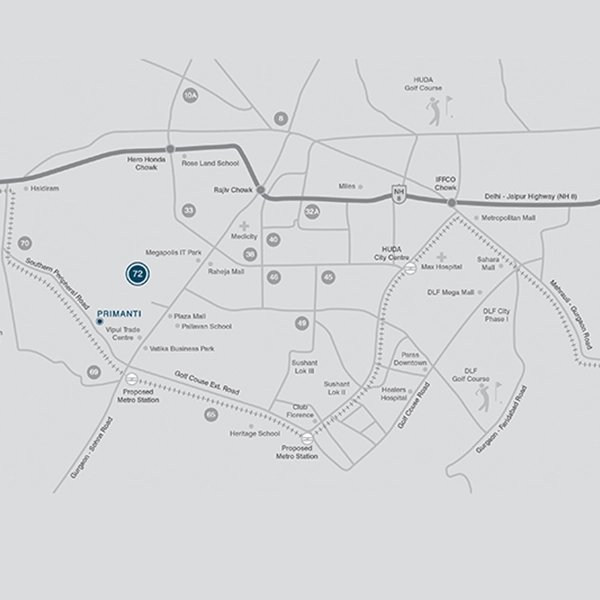 Located on Southern Peripheral Road, Sector 72, Gurgaon — with seamless access to NH-8, Sohna Road, and IGI Airport.