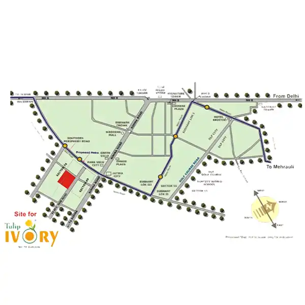 Situated in Sector 70, Gurgaon, Tulip Ivory enjoys excellent connectivity to Sohna Road, NH-48, Golf Course Extension Road, and SPR, while being surrounded by reputed schools, hospitals, and retail hubs.